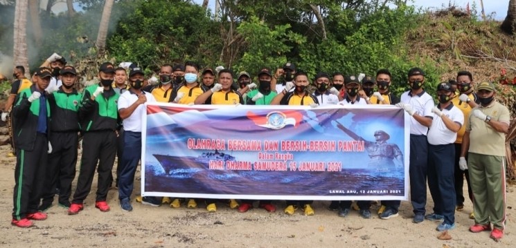 Dobo, Tribun-Aru.com: Dalam rangka memperingati Hari Dharma Samudera 15 Januari 2021 besok, Pangkalan Angkatan Laut (Lanal) Kepulauan Aru menyelenggarakan kegiatan olahraga bersama Forkopimda dan Bersih – Bersih Pantai, Selasa (12/1), bertempat di lapangan Arafuru dan pantai Mako Lanal Aru Batu Meja, Desa Durjela, Kabupaten Kepulauan Aru.
