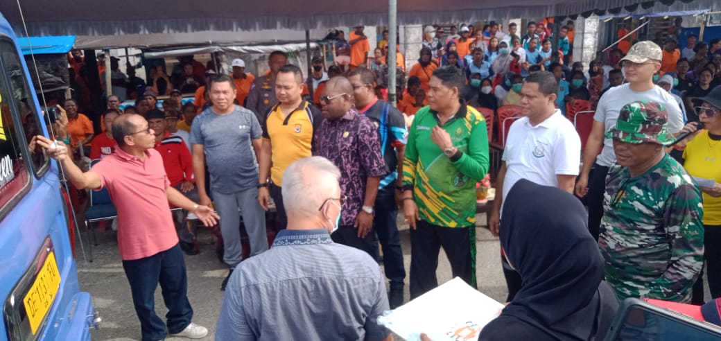 Pada (HPSN) 2023 ini, Bupati Kepulauan Aru dr. Johan Gonga melaunching penempelan stiker larangan buang sampah dan aksi penagihan retribusi pelayanan persampahan/kebersihan perdana 2023 di kota Dobo, Jumat (24/02/2023) bertempat di dermaga feri Dobo.