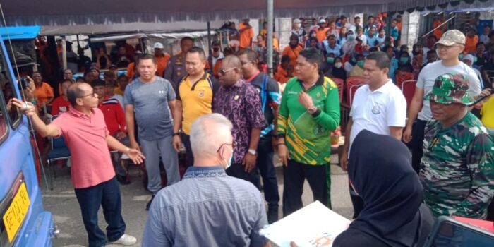 Pada (HPSN) 2023 ini, Bupati Kepulauan Aru dr. Johan Gonga melaunching penempelan stiker larangan buang sampah dan aksi penagihan retribusi pelayanan persampahan/kebersihan perdana 2023 di kota Dobo, Jumat (24/02/2023) bertempat di dermaga feri Dobo.