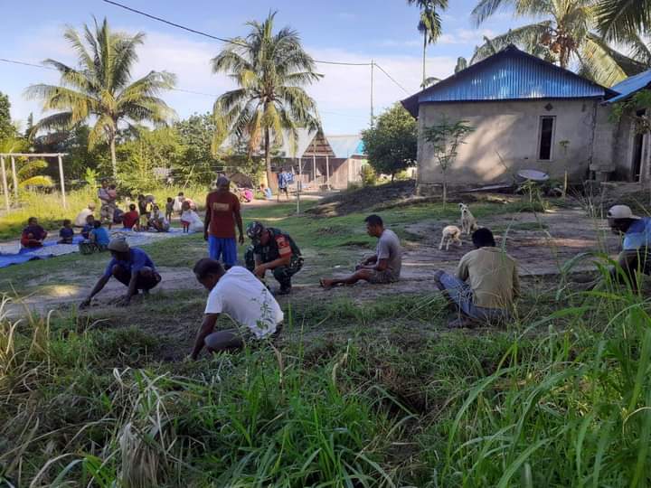 Babinsa Koramil Dobo Bantu Warga Apara Kerja Bakti