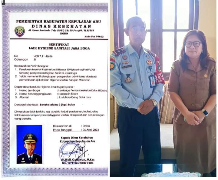 Dobo, BeritaJar.com: Lembaga Pemasyarakatan Kelas III Dobo, Kanwil Kemenkumham Maluku, mendapatkan Sertifikat Dapur Laik Higiene dari Dinas Kesehatan Kabupaten Kepulauan Aru.