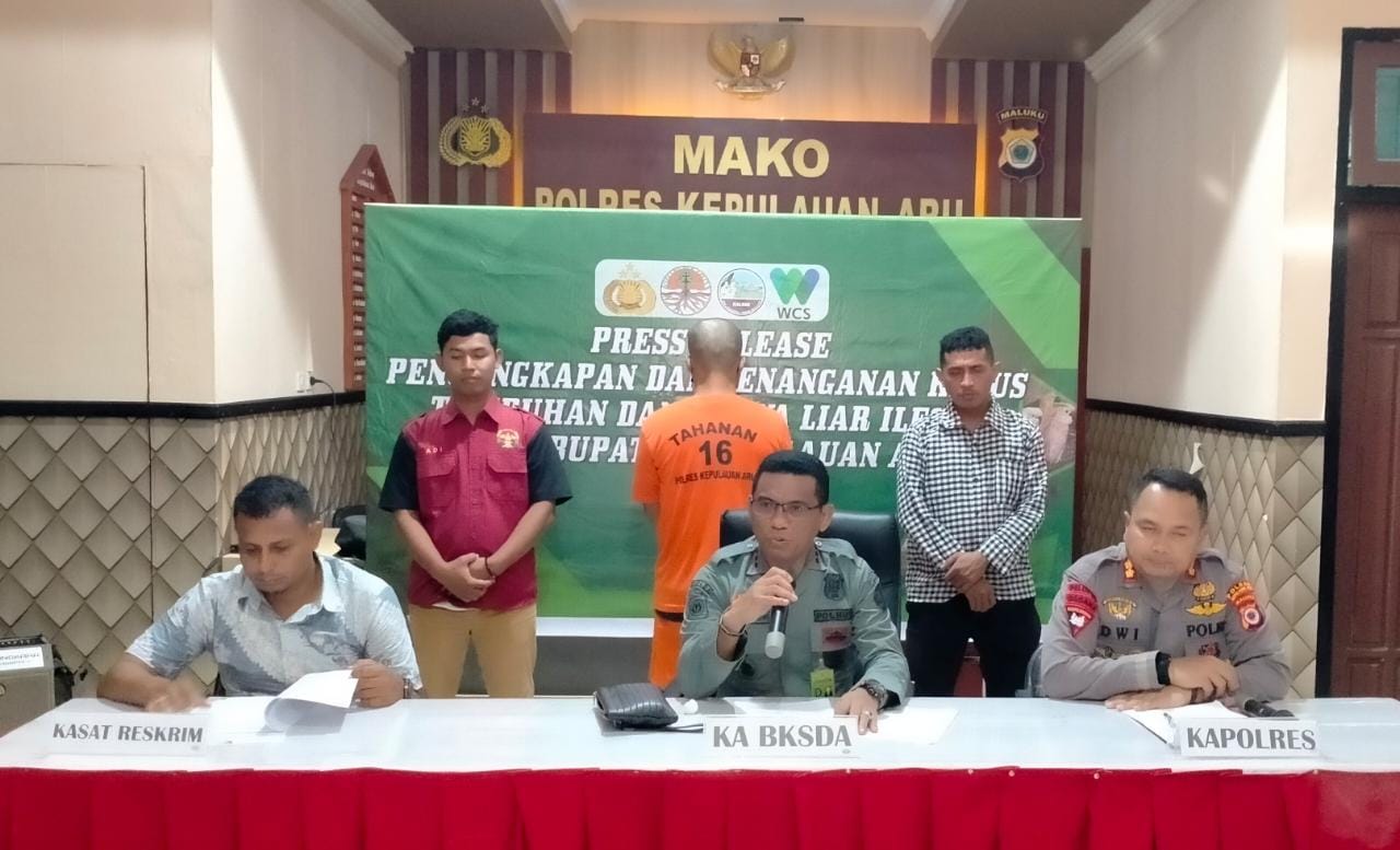 “Tersangka melanggar Pasal 40 ayat (2) Jo Pasal 21 ayat (2) huruf a Undang-Undang Republik Indonesia nomor 05 Tahun 1990 tentang Konservasi Sumber Daya Alam Hayati dan Ekosistemnya, sehingga dari kasus ini diancam dengan hukuman 5 tahun penjara dan benda Rp.100 juta,” beber Kapolres Aru.