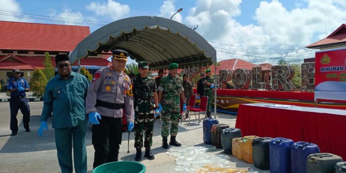 ” Miras ini dikarenakan tidak memiliki ijin resmi penjualan dan peredaran maka dihari ini dimusnahkan,”ucapnya.