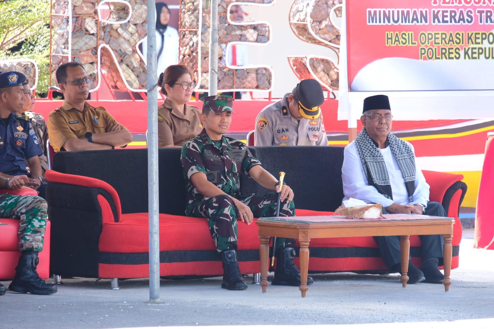 Pantauan media ini di Mapolres Aru, Usai mengikuti apel gelar pasukan, Perwira menengah TNI AL ini diberi kesempatan untuk turut memusnahkan ribuan minuman keras (Miras) tradisional yang berhasil disita oleh Sat Narkoba Polres Kepulauan Aru jelang Idul Fitri 1444 H.