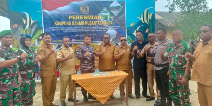 Dobo, BeritaJar.com: Komandan Pangkalan TNI Angkatan Laut (Danlanal Aru) Letkol Laut (P) Prasetiyo Agus Hariadi, S. E., M. Tr. Opsla meninjau sekaligus meresmikan Kampung Bahari Nusantara (KBN) di Desa Jabulenga Kecamatan Pulau-Pulau Aru, Senin (15/5/2023).