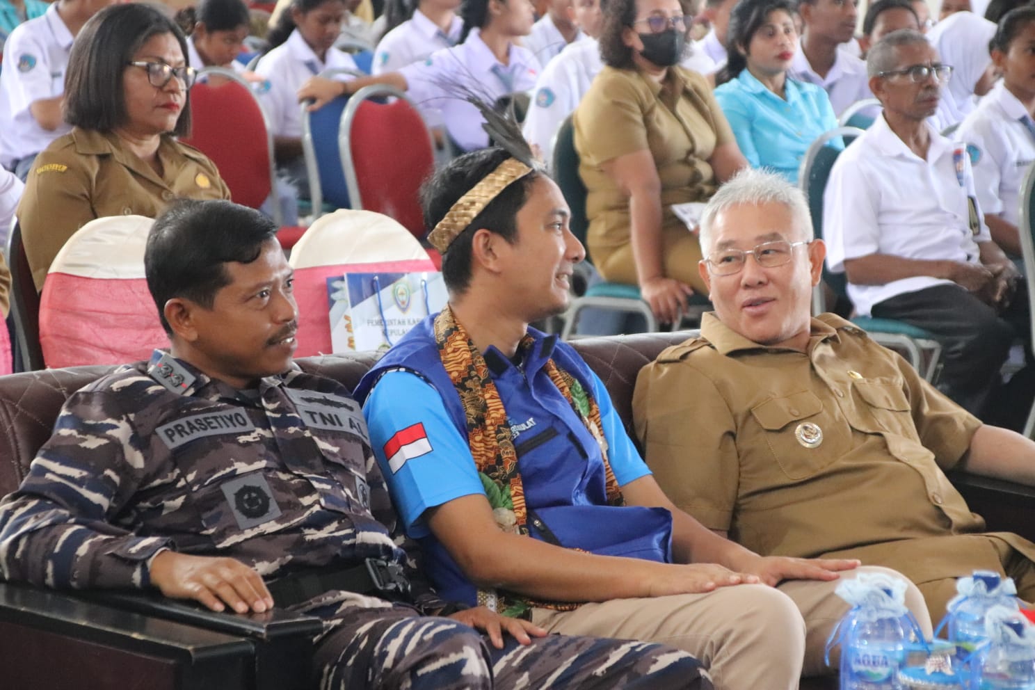 Dobo, BeritaJar.com: Bupati Kepulauan Aru dr. Johan Gonga dan Komandan Pangkalan TNI AL (Danlanal) Aru Letkol Laut (P) Prasetiyo Agus Hariadi, SE., M.Tr. Opsla menyambut Tim Ekspedisi Rupiah Berdaulat Tahun 2023.