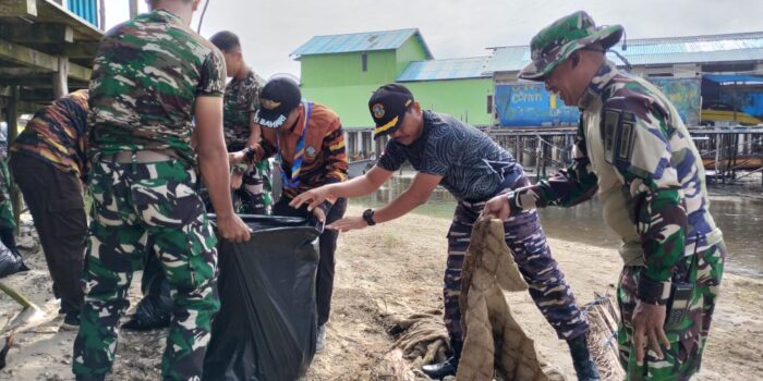 Berkat kekompakan Prajurit Prajurit Lanal/Polri dan warga setempat, area sejauh satu kilometer yang merupakan muara sungai di laut dalam waktu dua jam telah nampak bersih dari sampah.