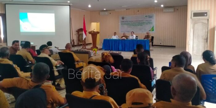 Dobo, BeritaJar.com: BPJS Ketenagakerjaan wilayah Tual, Malra dan Aru mengandeng Pemerintah Kabupaten (Pemkab) Kepulauan Aru menggelar Monitoring Evaluasi (Monev) Impres Nomor 2 tahun 2021 tentang optimalisasi pelaksanaan jaminan sosial ketenagakerjaan melalui ekosistem desa di Kabupaten Kepulauan Aru.