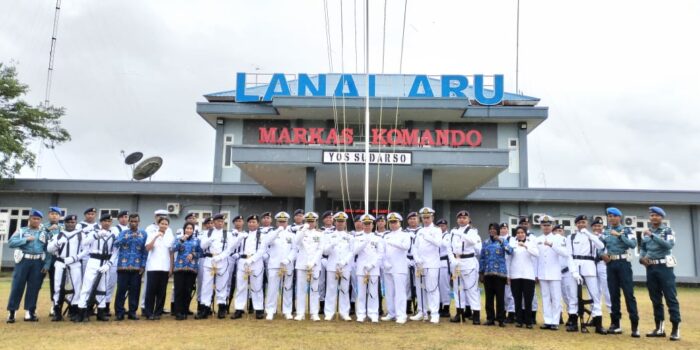 Turun hadir dalam upacara peringatan HUT Angkatan Laut ke-78 yakni seluruh Perwira Staf Lanal Aru, Prajurit Bintara dan Tamtama serta ASN Lanal Aru.