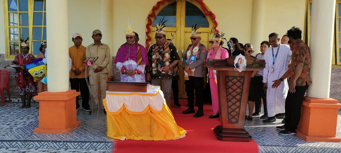 Dobo, BeritaJar.com: Wakil Bupati Kepulauan Aru Muin Sogalrey menghadiri peresmian Gereja Katolik Bunda Hati Kudus di desa Bemun di kecamatan Aru Selatan, Jumat (22/9/2023).