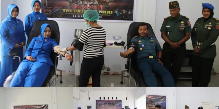 Dobo, BeritaJar.com: Pangkalan TNI Angkatan Laut (Lanal) Aru menggelar kegiatan Bakti Sosial Kesehatan (Donor Darah) dalam rangka memperingati HUT TNI ke 78 tahun 2023, Minggu (24/9/2023).