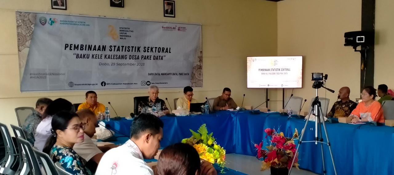 Dobo, BeritaJar.com: Badan Pusat Statistik (BPS) Kepulauan Aru menyelenggarakan Pembinaan Statistik Sektoral “Baku Kele Kalesang Desa Pake Data” dilantai II Kantor Bupati Kepulauan Aru, Jumat (29/9/2023).