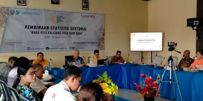 Dobo, BeritaJar.com: Badan Pusat Statistik (BPS) Kepulauan Aru menyelenggarakan Pembinaan Statistik Sektoral “Baku Kele Kalesang Desa Pake Data” dilantai II Kantor Bupati Kepulauan Aru, Jumat (29/9/2023).