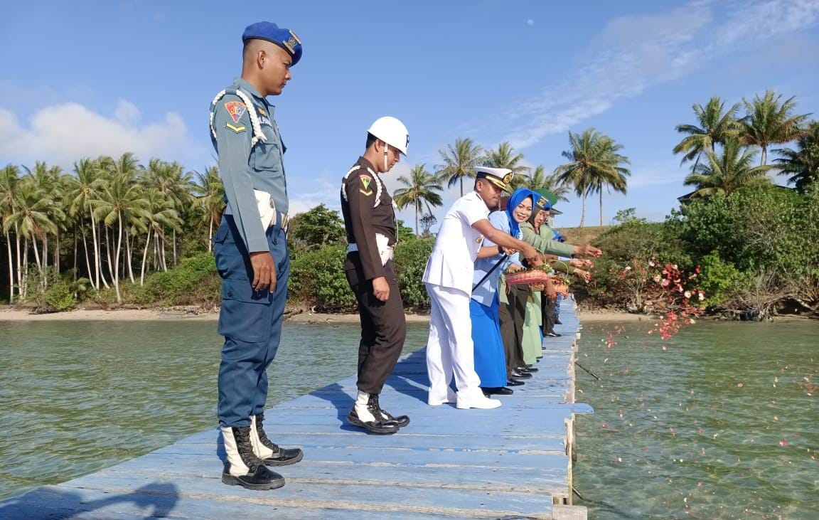 Dobo, BeritaJar.com: Dalam menyambut Hari Ulang Tahun (HUT) TNI yang ke-78, jajaran TNI di Kepulauan Aru menggelar Tabur Bunga di dermaga Balaru Lanal Aru Batu Meja desa Durjela.