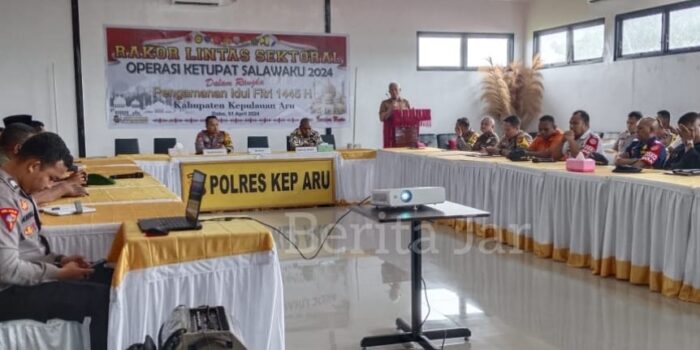 Dobo, Berita Jar.com: Dalam rangka pengamanan Idul Fitri 1445H, Polres Kepulauan Aru menggelar Rapat Koordinasi (Rakor) Lintas Sektoral Operasi Ketupat Salawaku 2024.
