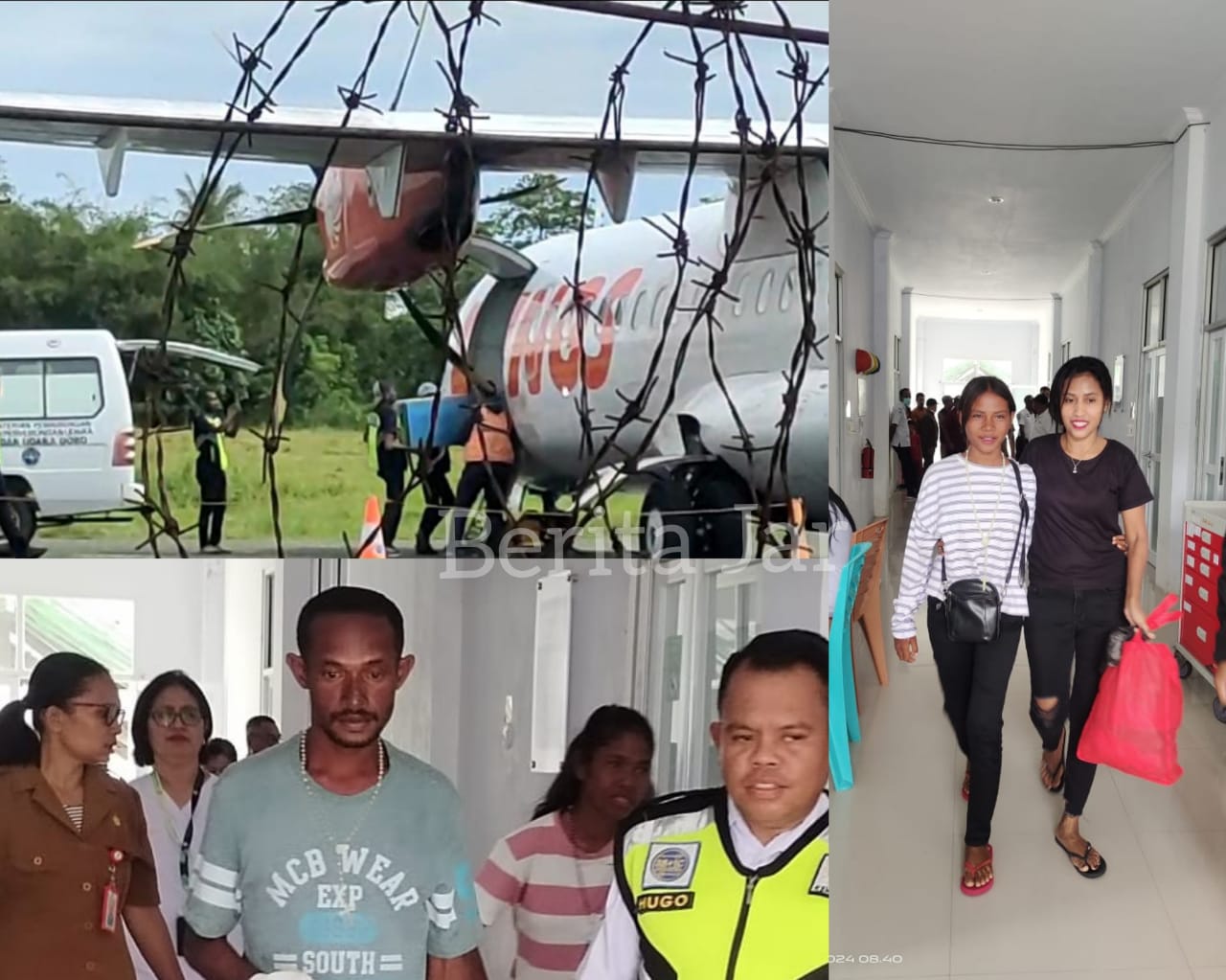 Pemulangan ketiga korban selamat dan satu jenazah menggunakan pesawat Wings Air, Senin (01/04/2024) di bandara Rar Gwamar Dobo.