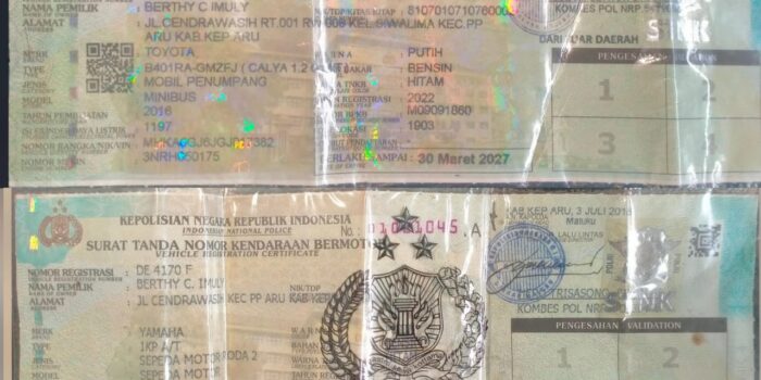 Pengumuman Kehilangan Satu Buah BPKB Mobil dan Motor Berita Jar 2 tahun ago Pengumuman Kehilangan Satu Buah BPKB Mobil dan Satu Buah BPKB Motor, Atas Nama Berthy C. Imuly Jl. Cendrawasih Siwalima Pulau-Pulau Aru, Kepulauan Aru