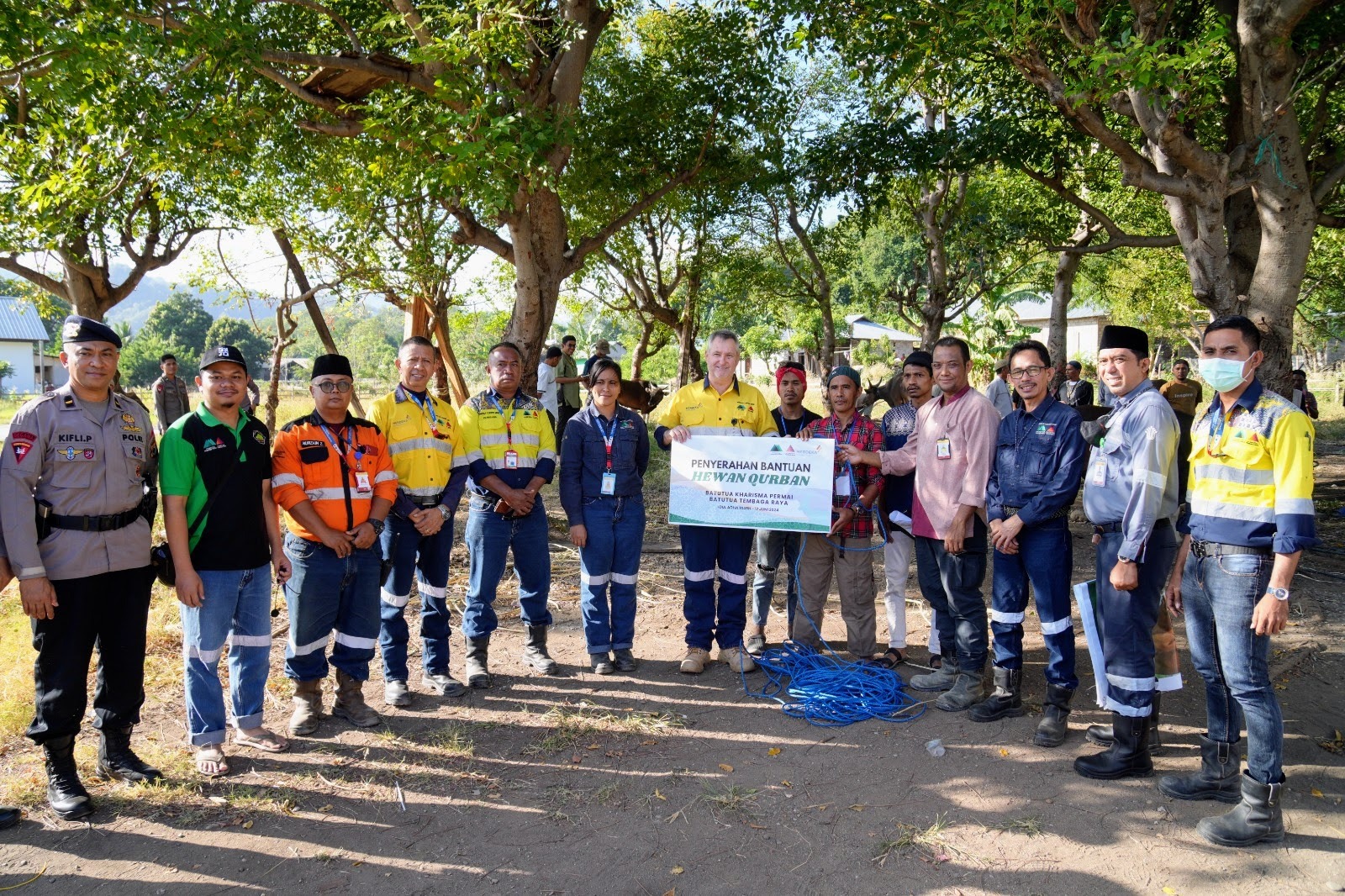 MBD, BeritaJar.com: Dalam memperingati Hari Idul Adha 1445 hijriah, Batutua Kharisma Permai dan Batutua Tembaga Raya (BKP-BTR) menyerahkan sejumlah hewan kurban berupa sapi dan kambing bagi umat muslim di Wetar, Kabupaten Maluku Barat Daya (MBD), Senin (17/6/2024).