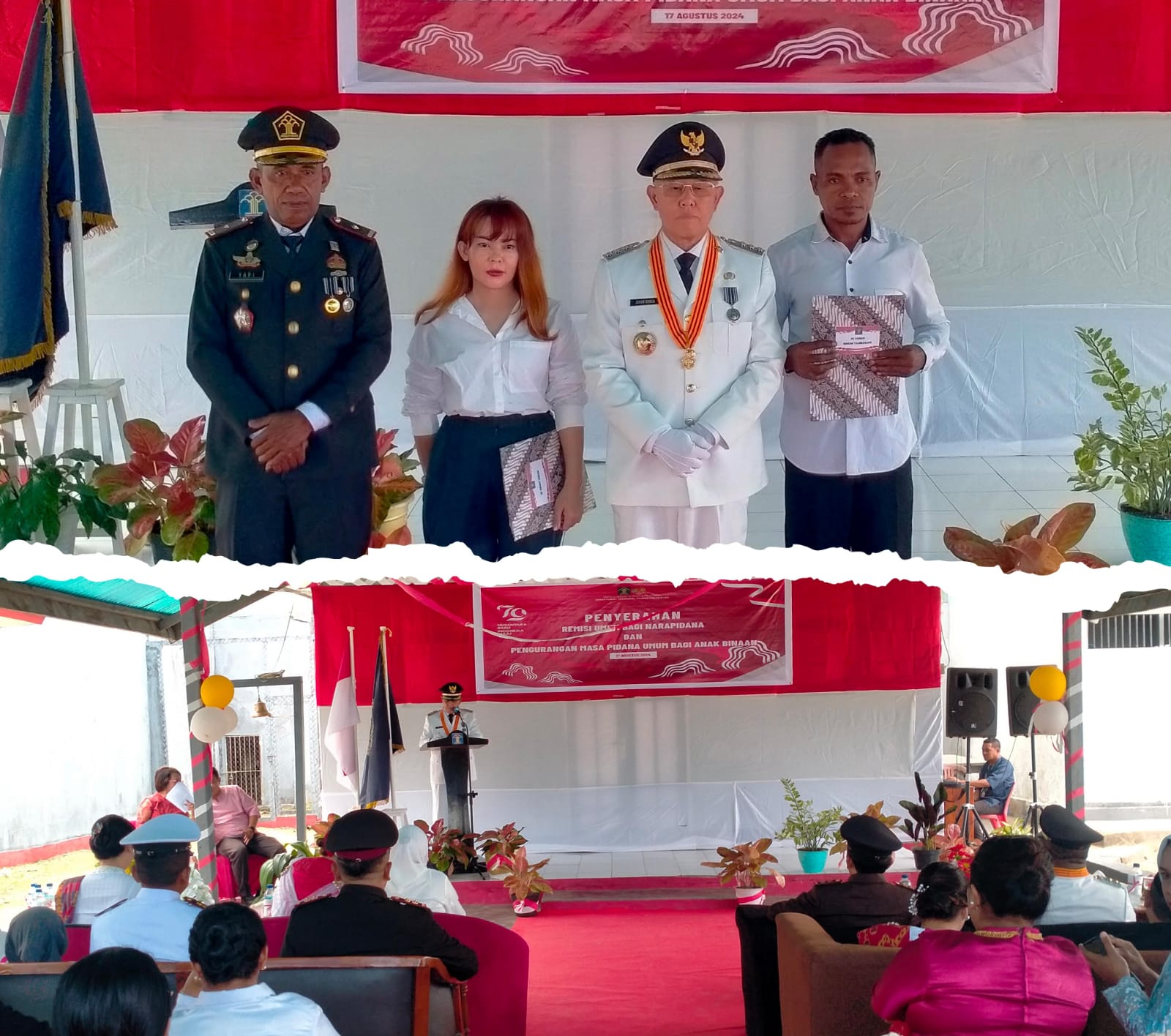 Penyerahan remisi umum narapidana dan pengurangan masa pidana umum bagi anak binaan yang berlangsung di Lapas Kelas III Dobo itu diserahkan oleh Bupati Kepulauan Aru, dr. Johan Gonga kepada dua orang perwakilan secara simbolis.