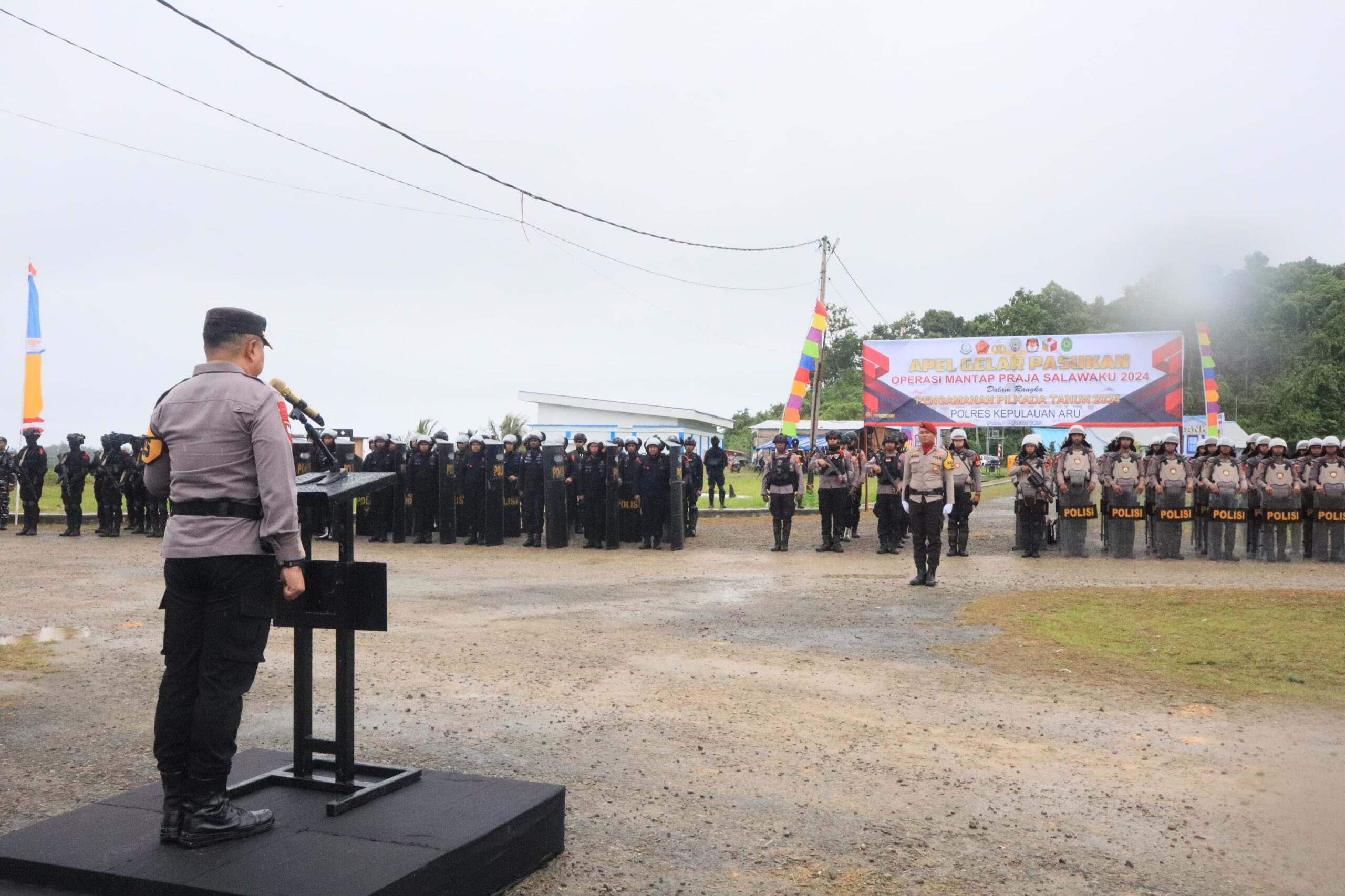Dobo, BeritaJar.com: Dalam rangka pengamanan Pilkada 2024, Polres Kepulauan Aru Gelar Apel Pasukan Operasi Mantap Praja Salawaku, Sabtu (24/08).