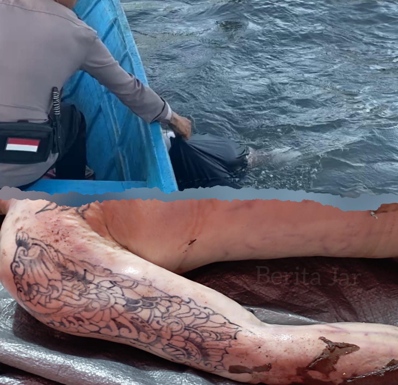 “Dari hasil pemeriksaan menemukan ciri berupa tanda berupa tato di lengan kanan dan dada korban. Tato tersebut bermotif abstrak,” ungkap Sahertian.
