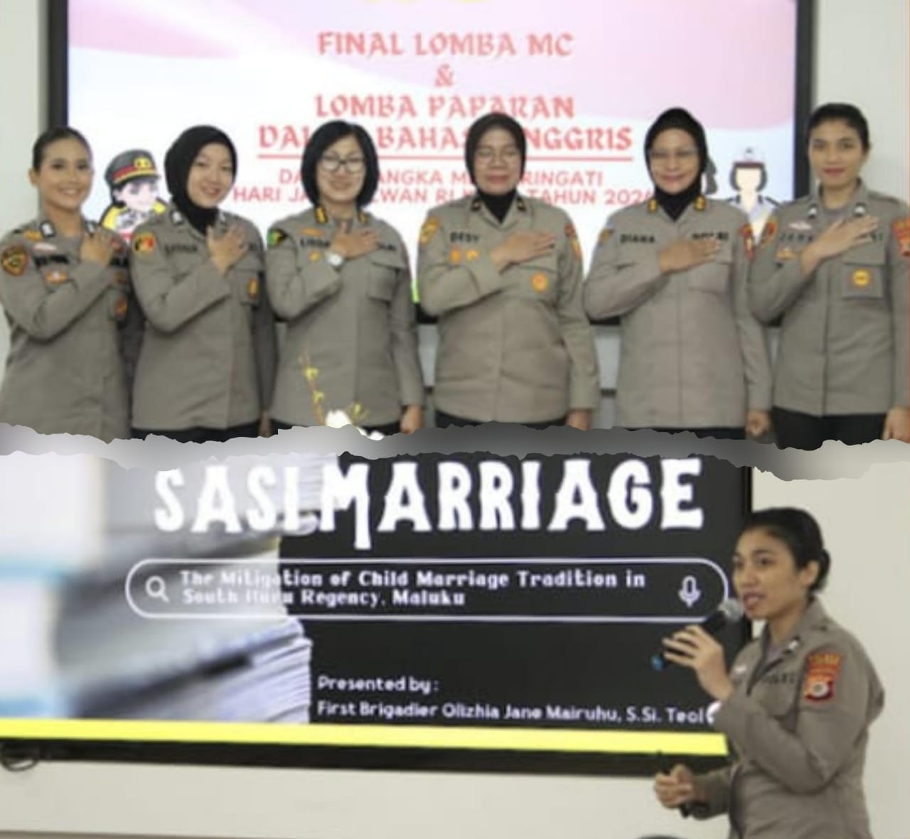 “Briptu Jane memaparkan materi dengan judul “Sasi Mariage” The Mitigation Of Child marriage Tradition in South Buru Regency. Dan dia keluar sebagai juara pertama pada kategori Bintara,” ucap Pakor Polwan Polda Maluku, AKBP. Rositah Umasugi.