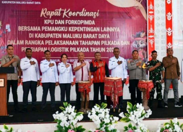 Tiakur, BeritaJar.com: Komisi Pemilihan Umum (KPU) Kabupaten Maluku Barat Daya (MBD) dan Forum Koordinasi Pimpinan Daerah (Forkopimda) bersama pemangku kepentingan lainnya menggelar rapat koordinasi (Rakor) pelaksanaan tahapan Pilkada dan persiapan logistik Pilkada serentak 2024.