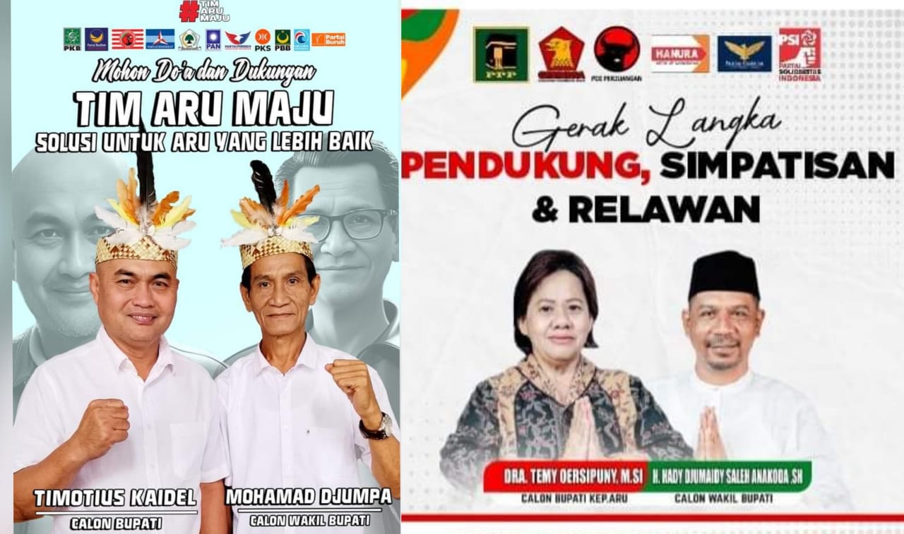 Sedangkan paslon Dra. Temy Oersipuny, MSi dan Hady Djumaidy Saleh dengan partai pengusung yakni Hanura, Gerindra, PPP, PDIP dan PSI.