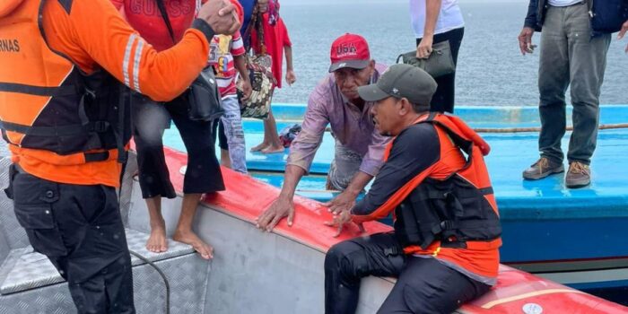 Selanjutnya seluruh penumpang dipindahkan ke RIB Pos SAR Tual dan Kapal Bakamla guna dievakuasi menuju Langgur, Kabupaten Maluku Tenggara.