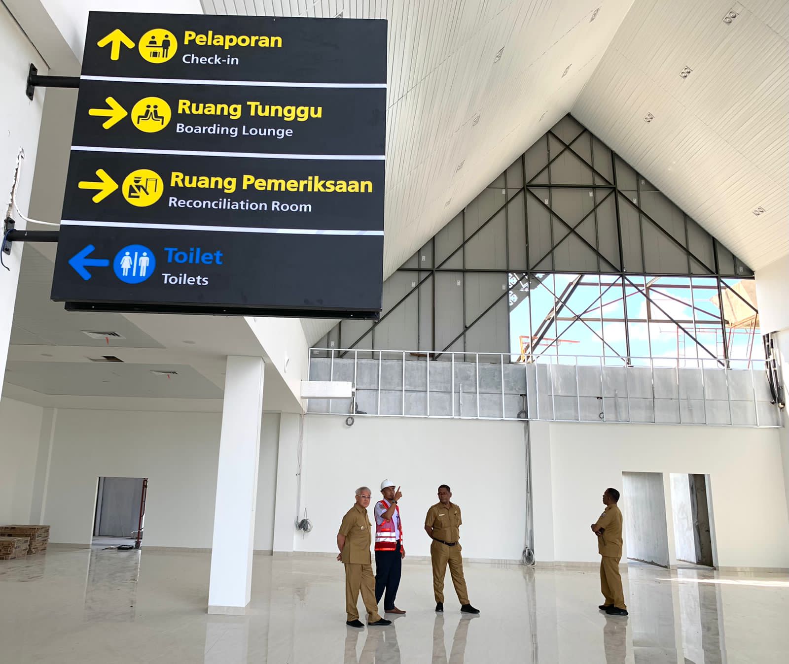 Progres pembangunan pekerjaan terminal bandara saat ini sudah mencapai tahap perampungan, gedung yang dibangun dua lantai tersebut memiliki hampir seluruh fasilitas yang dibutuhkan penumpang diantaranya, ruang tunggu eksklusif, ruang pemeriksaan, ruangan ibu menyusui/nursery dan sentra UMKM serta sejumlah ruang lainnya.