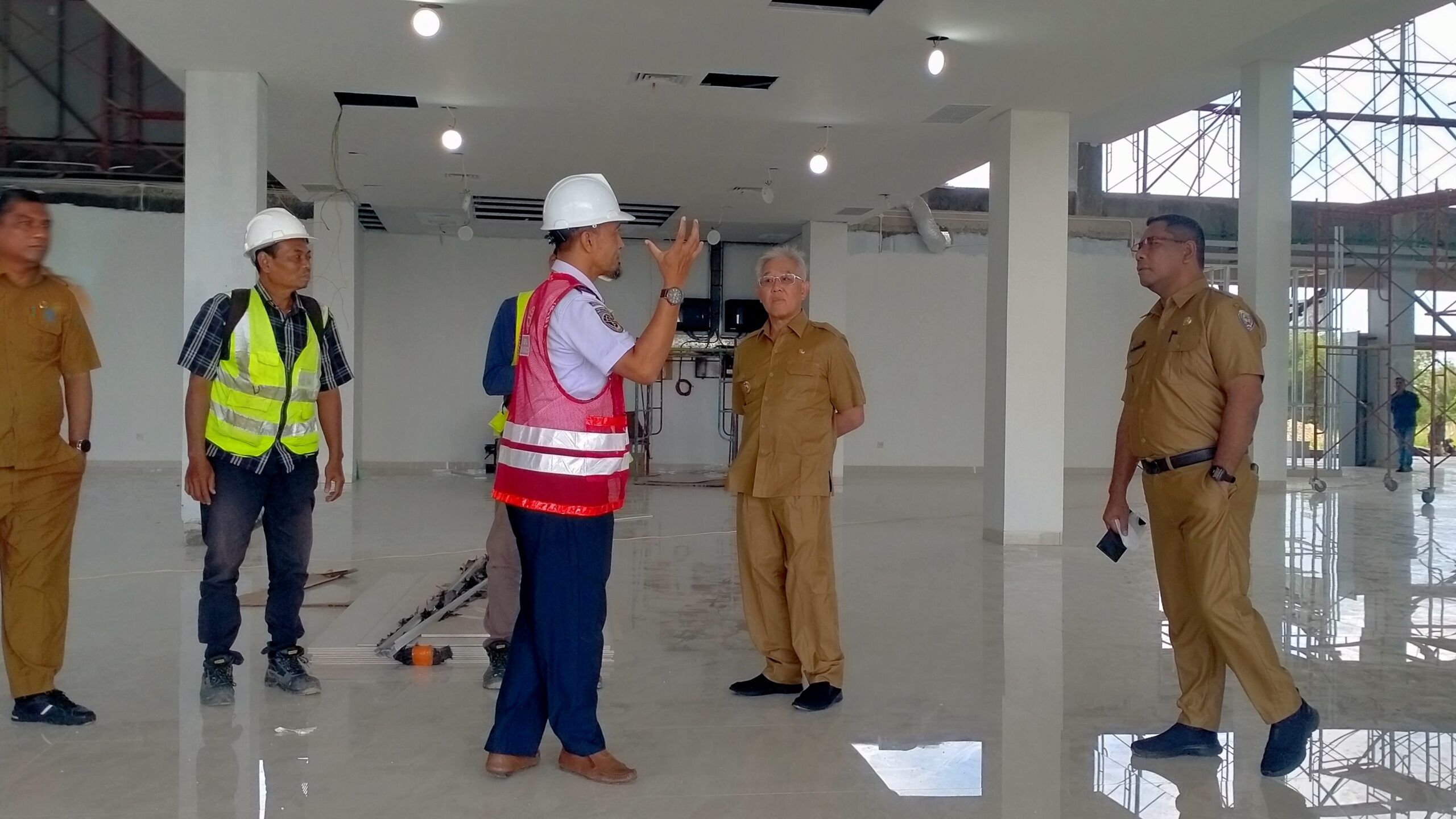 Dalam kunjungannya tersebut, Bupati didampingi Kadis Perhubungan, Kadis PU, Kepala Bandara Rar Gwamar Dobo dan Kepala BKD Pemkab Aru langsung meninjau secara dekat pembangunan gedung dan kesiapan fasilitas terminal penumpang bandara Rar Gwamar Dobo.