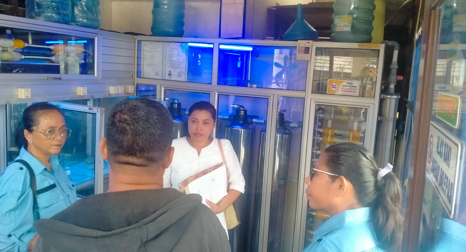 DPMPTSP Aru dalam Pengawasan Perizinan Berusaha Berbasis Resiko di Depot Air Minum Isi Ulang Wakatobi, Rabu (23/10/2024).