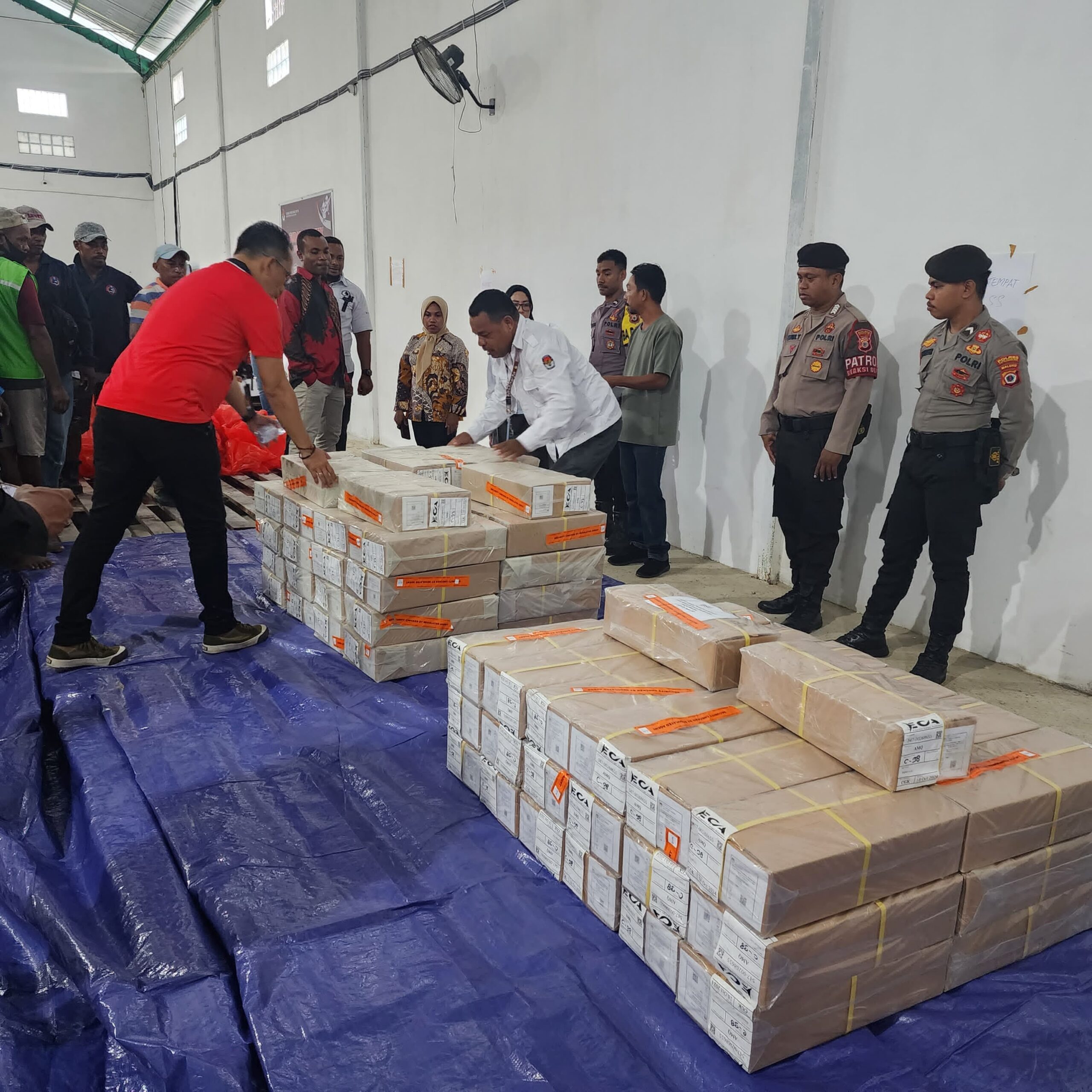Dobo, BeritaJar.com: Komisi Pemilihan Umum (KPU) Kepulauan Aru telah menerima kiriman logistik Pilkada 2024 berupa surat suara untuk Pemilihan Gubernur- Wakil Gubernur dan Bupati dan Wakil Bupati Kepulauan Aru. Pengiriman logistik untuk Pilkada tersebut tiba di gudang Logistik KPU pada, Senin (28/10/2024).