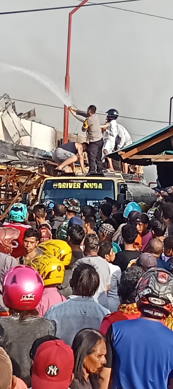 Berdasarkan pantauan media ini dilokasi, puluhan bangunan yang merupakan tempat jualan yakni tokoh, kios maupun rumah ludes terbakar berserta seluruh barang yang didalamnya. Kepulan asap hitam dan kobaran api yang menimbulkan kepanikan warga.