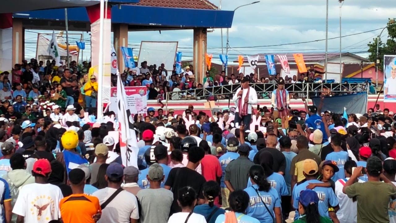 Dobo, BeritaJar.com: Kampanye akbar pasangan calon bupati dan wakil bupati Kepulauan Aru nomor urut 2, Timotius Kaidel dan Mohamad Djumpa,M.Si digelar di Lapangan Lapangan Yos Soedarso, Sabtu (23/11/2024).