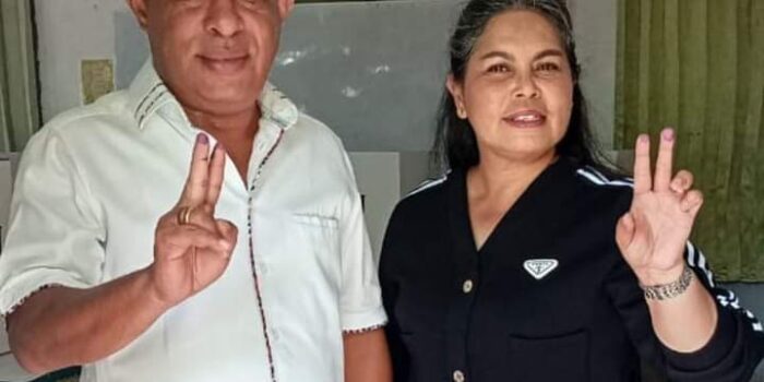 Tiakur, BeritaJar.com: Calon Bupati Maluku Barat Daya (MBD) petahana Benyamin Thomas Noach bersama sang istri Relly Noach Lobloby menyalurkan hak suaranya di TPS 02 Kelurahan Tiakur, Rabu (27/11/2024).