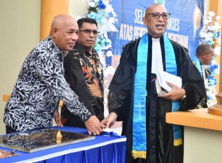 Bupati MBD Benyamin Th. Noach dalam sambutannya menyampaikan rasa syukur atas keberhasilan pembangunan gereja tersebut.