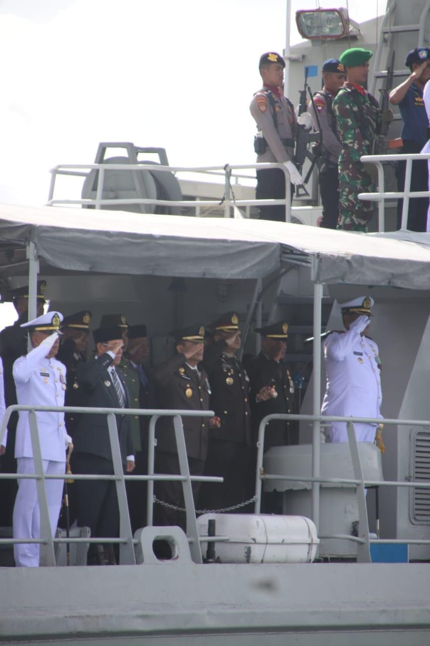 Peringati Hari Dharma Samudera Ke-63, Danlanal Aru Pimpin Upacara Tabur Bunga di Laut diatas KAL Pulau Trangan