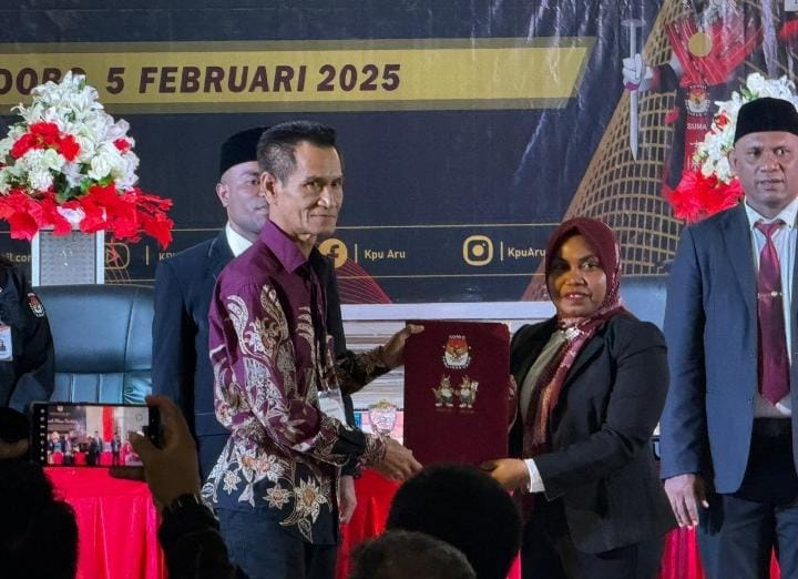 Dikatakan, berdasarkan Keputusan KPU Kabupaten Kepulauan Aru Nomor 3 Tahun 2025 tentang penetapan pasangan calon Bupati dan Wakil Bupati terpilih Kabupaten Kepulauan Aru tahun 2024.