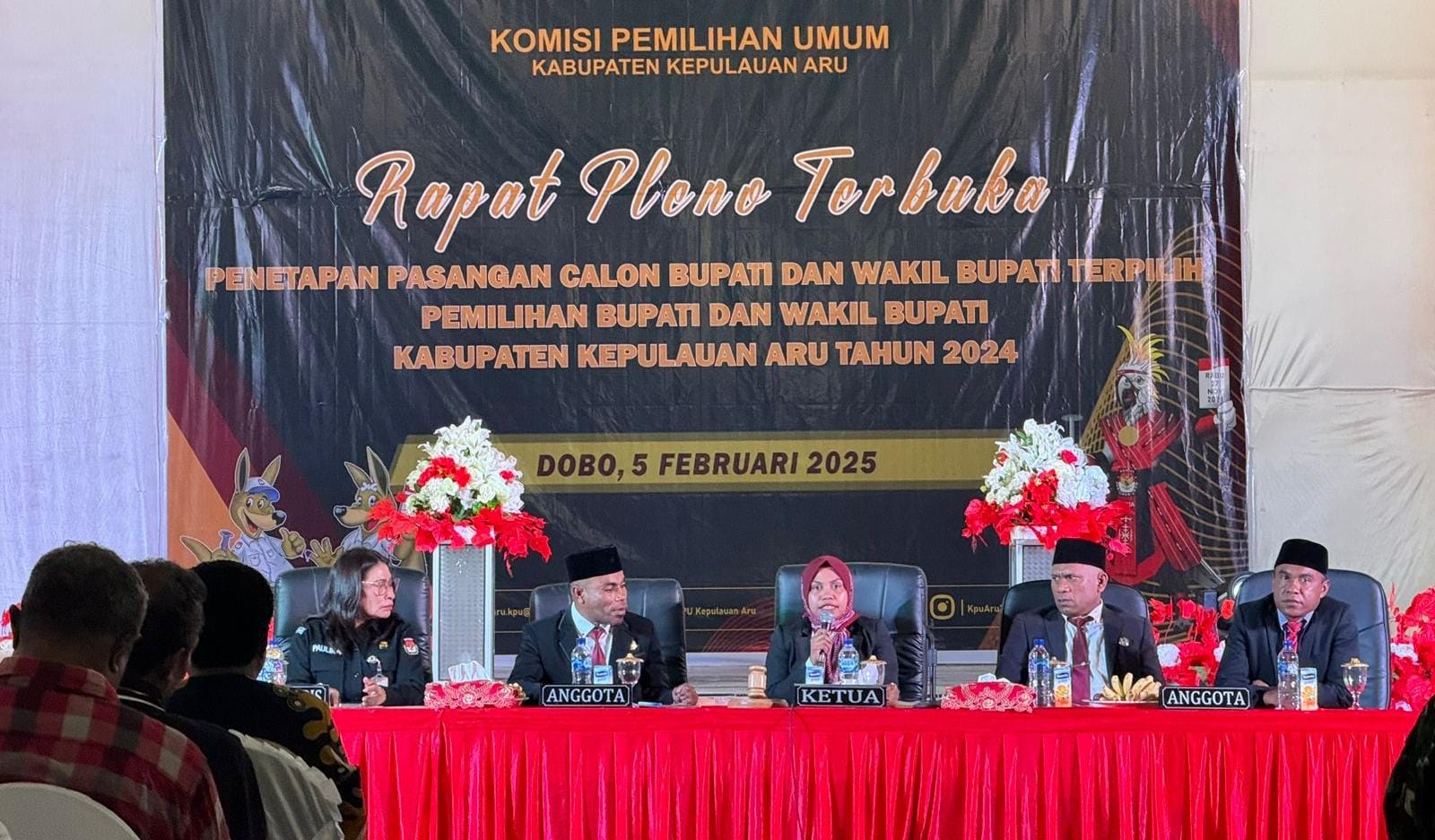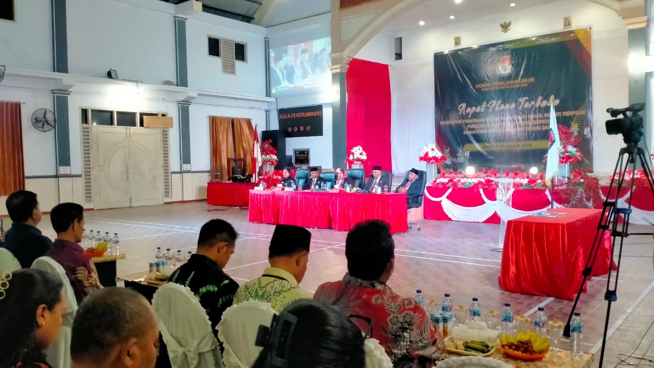 Dobo, BeritaJar.com: Komisi Pemilihan Umum (KPU) Kepulauan Aru menggelar Rapat Pleno Terbuka Penetapan Pasangan Calon (Paslon) Bupati dan Wakil Wakil Bupati Aru Terpilih Tahun 2024 di Aula Cendrawasih, Rabu (05/2/2025.