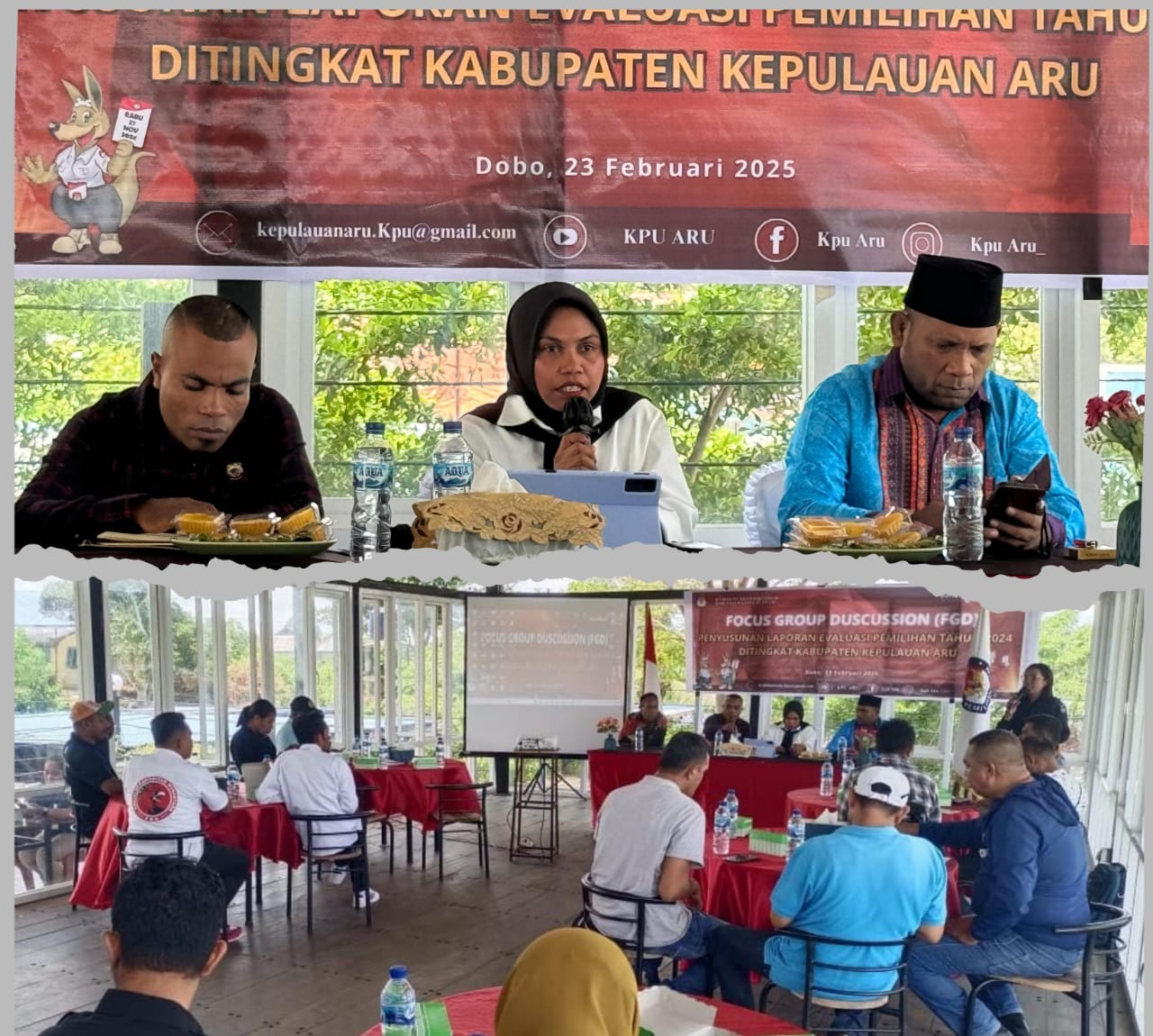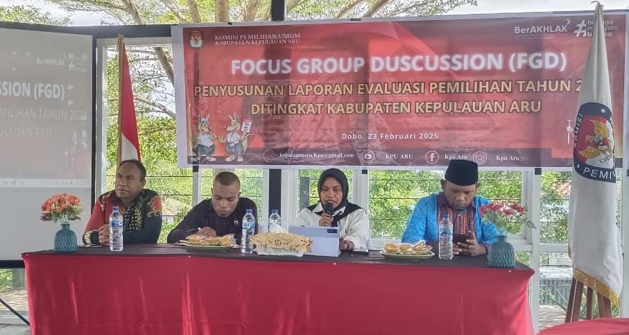 Dobo, BeritaJar.com: Komisi Pemilihan Umum (KPU) Kepulauan Aru melaksanakan kegiatan Focus Group Discussion (FGD) dalam rangka Penyusunan Laporan Evaluasi Pemilihan Tahun 2024, Minggu, (23/02/2025) di lantai II Cafe Gospel.