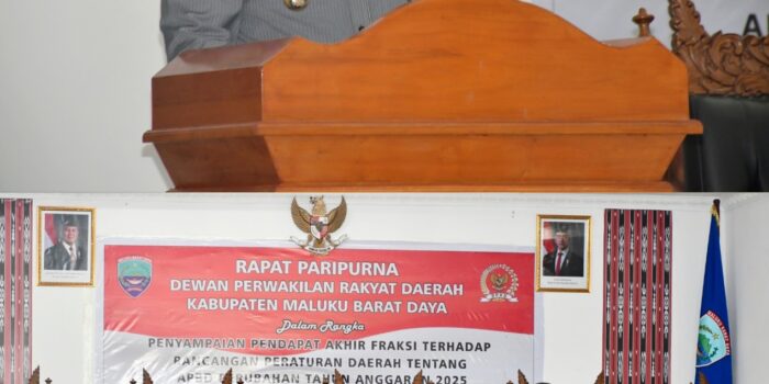 Takur, Beritajar.com: Dewan Perwakilan Rakyat Daerah (DPRD) Kabupaten Maluku Barat Daya (MBD) menggelar Rapat Paripurna dalam rangka penyampaian pendapat akhir fraksi terhadap Rancangan Peraturan Daerah tentang APBD Perubahan (APBDP) Tahun Anggaran (TA) 2025, bertempat di Ruang Sidang Utama DPRD MBD, Rabu (22/10/2025).