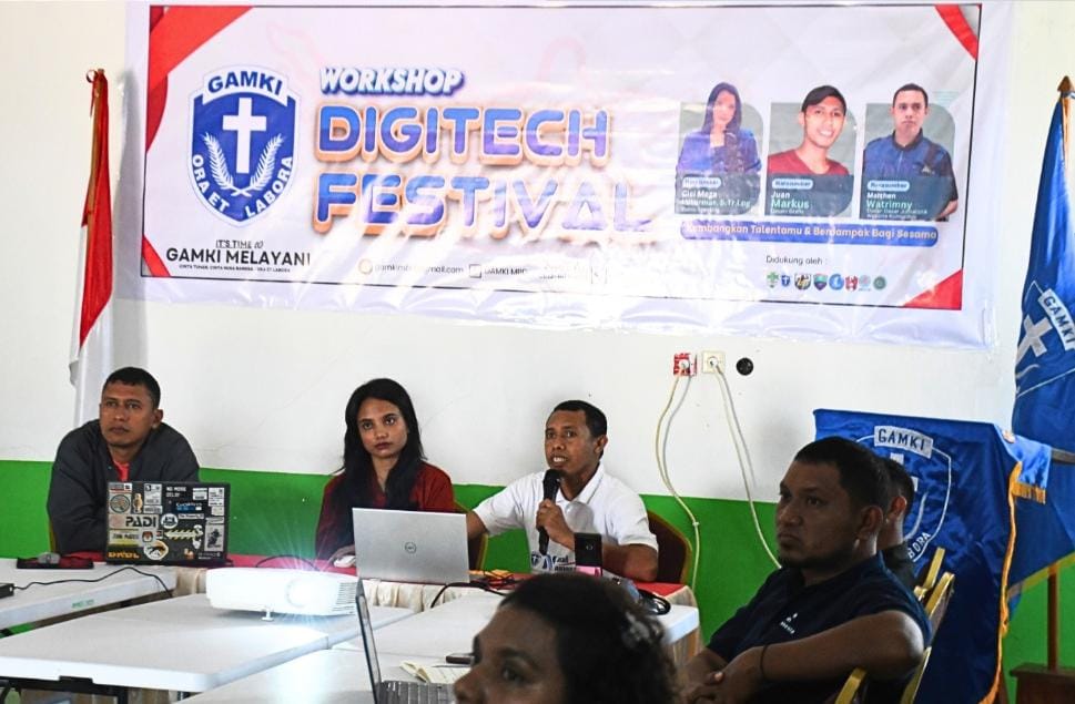 Tiakur, Beritajar.com: Workshop Digitech Festival Gerakan Angkatan Muda Kristen Indonesia (GAMKI) Cabang Maluku Barat Daya (MBD) dalam sesi materi Pengelolaan Website Komunitas yang dibawakan Narasumber, Marthen Watrimny, selaku Kepala Bidang Pengelolaan Informasi dan Komunikasi Publik (PIKP), Dinas Komunikasi Informatika Statistik dan Persandian (Kominfostaper) Kabupaten MBD mensosialisasikan Komunitas Informasi Masyarakat (KIM), di Aula Dinas Kesehatan, Sabtu (25/10/2025).