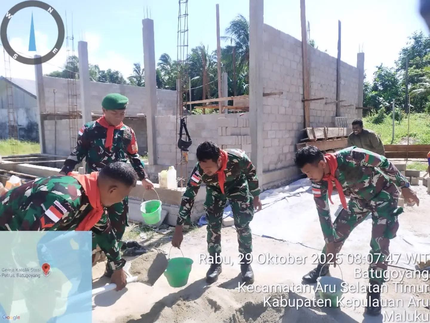 Hal ini dibuktikan dengan keterlibatan mereka dalam kegiatan kerja bakti membantu percepatan pembangunan Sekolah SMP Negeri 7 Batugoyang yang berlokasi di Desa Batugoyang, Kecamatan Aru Selatan Timur, Kabupaten Kepulauan Aru, Rabu (29/10/2025).