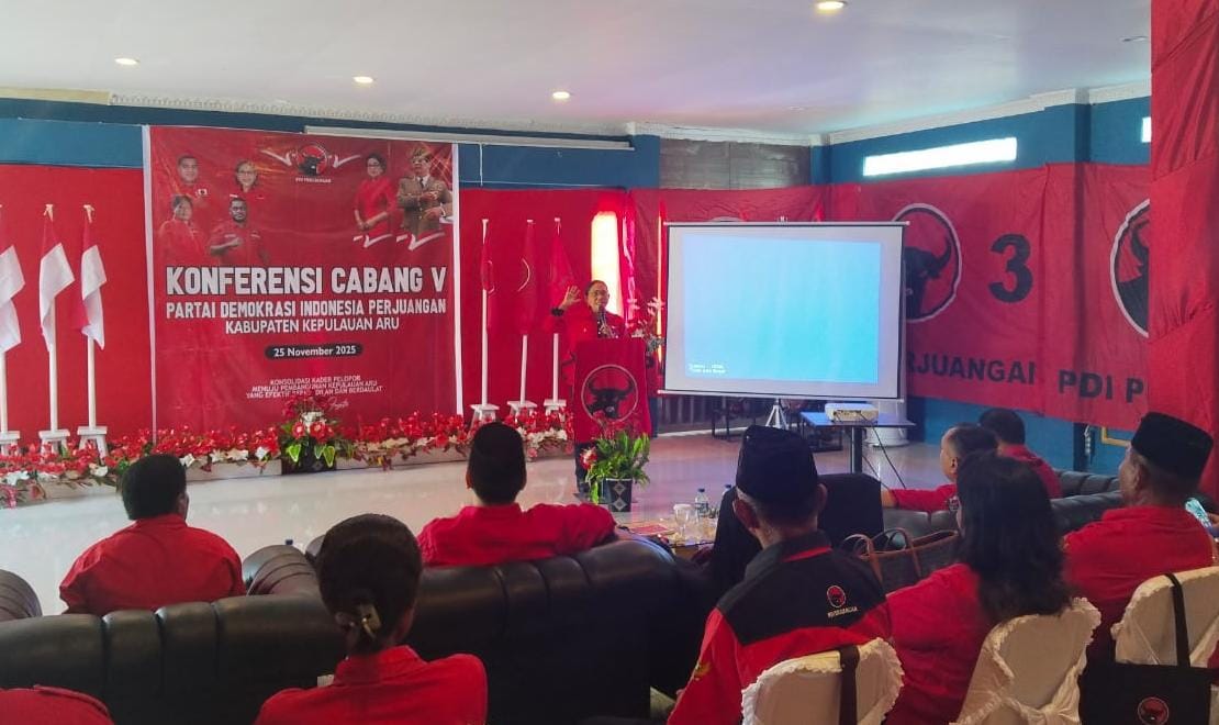Dobo, Beritajar.com: DPC Partai Demokrasi Indonesia Perjuangan (PDIP) Kepulauan Aru menggelar Konferensi Cabang (Konfercab) ke-V pada Selasa (25/11/2025).