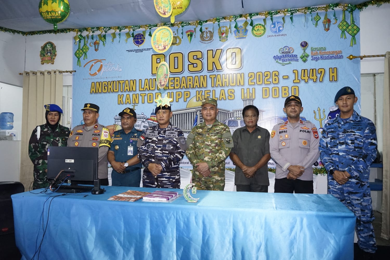 Dobo, Beritajar.com : Bupati Kepulauan Aru, Timotius Kaidel bersama jajaran Forkopimda melakukan peninjauan langsung ke Posko Terpadu Angkutan Laut Lebaran Tahun 2026 (1447 H) di Kantor UPP Kelas III Dobo, Kamis (19/3/2026) malam.