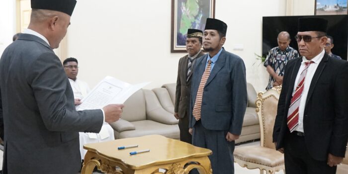 Prosesi pengambilan sumpah jabatan berlangsung khidmat di Ruang Kerja Bupati Kepulauan Aru.