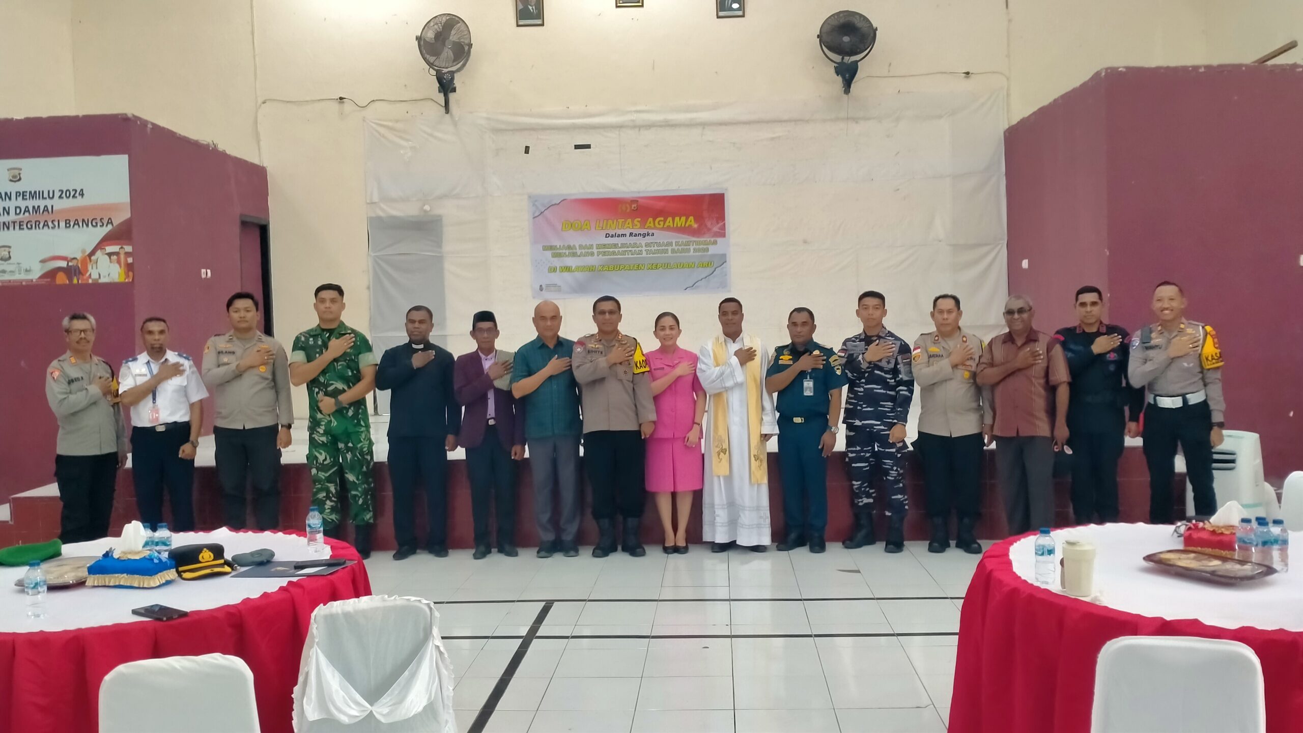 Dobo, Beritajar.com: Kepolisian Resort (Polres) Kepulauan Aru menggelar doa lintas agama dalam rangka menjaga dan memelihara situasi Kamtibmas menjelang pergantian