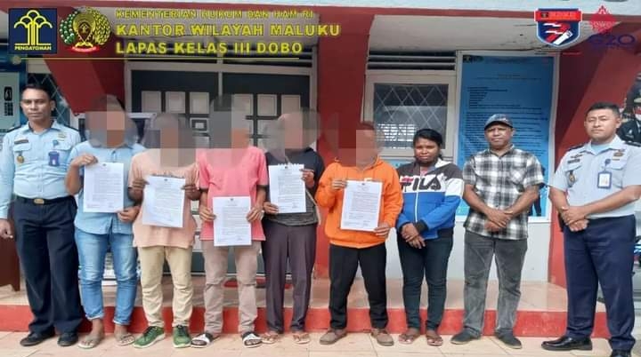 Dobo, BeritaJar.com: Lembaga Pemasyarakatan (Lapas) Kelas III Dobo memberikan Asimilasi di Rumah bagi 5 Warga Binaan Pemasyarakatan (WBP), Senin (18/7/2022).