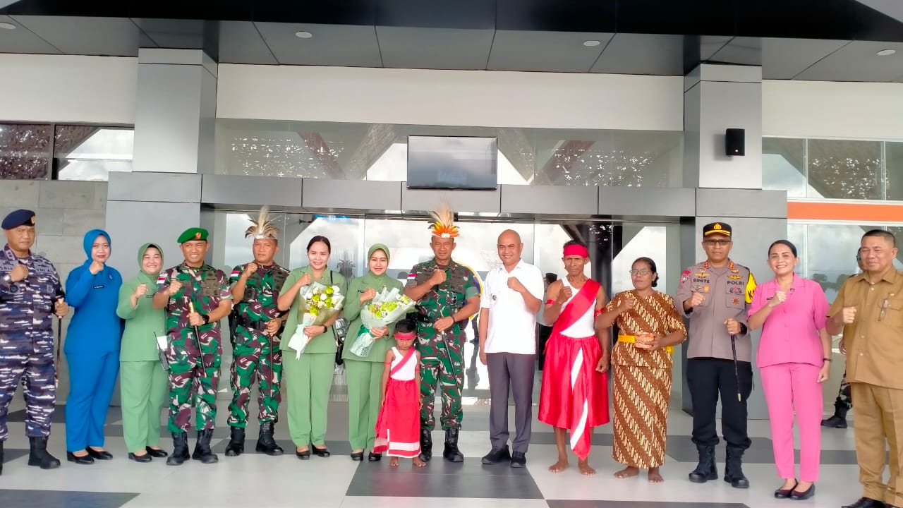 Dobo, Beritajar.com: Bupati Kepulauan Aru, Timotius Kaidel menyambut langsung kedatangan Panglima Kodam (Pangdam) XV Pattimura, Mayjen TNI Putranto Gatot Sri